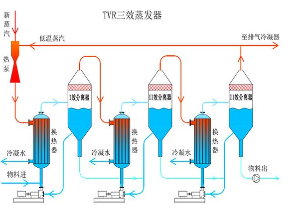 三效蒸发器,TVR三效蒸发器主要包括换热器,冷凝器,分离器等通用设备。